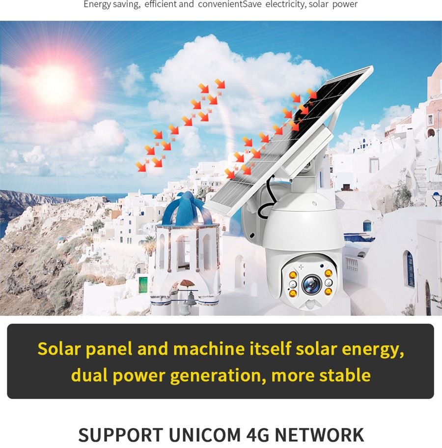 4. Даљински управљач са ширим погледом са померањем и нагибом{1}}соларна птз камера пружа хоризонталне углове гледања од 360 степени и вертикалне ротације од 120 степени. Подржава даљинско управљање смером на вашем телефону. Са функцијама дигиталног зумирања од 3к и дељењем са више-корисника, што пружа флексибилнији и шири поглед за вас и породице за надгледање ваше куће у-облику у реалном времену. Одабиром соларне спољне камере заштитите свој дом 24/7.